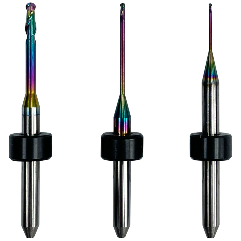 CADCAM Machine: ChangYu; Material: Zirconia, PMMA; Coating: DC(CVD) Diamond Coating, DLC Diamond Like Coating, RC Rainbow Coating; Size: D3.175x2.0mm, D3.175x1.0mm, D3.175x0.6mm.